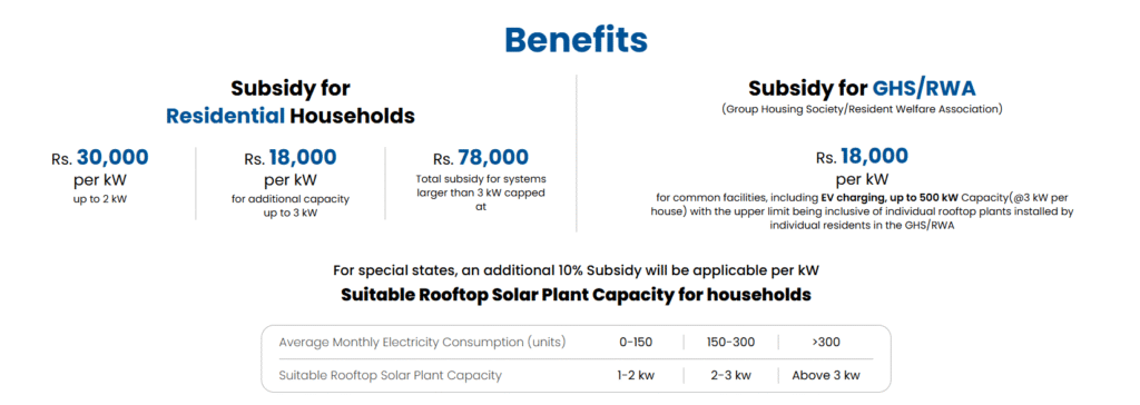PM Surya Ghar: Muft Bijli Yojana भारत सरकार की एक प्रमुख योजना है जिसका उद्देश्य देश भर के एक करोड़ घरों में रूफटॉप सौर ऊर्जा प्रणाली स्थापित कर 300 यूनिट तक मुफ्त बिजली उपलब्ध कराना है। इसके तहत परिवारों को 1–3 kW क्षमता तक के सोलर सिस्टम पर अधिकतम ₹78,000 तक की सब्सिडी सीधे बैंक खाते में दी जाती है, साथ ही लगभग 6% ब्याज दर पर आसान लोन की सुविधा भी मिलती है। योजना का कुल बजट लगभग ₹75,000 करोड़ है और इसमें “मेड इन इंडिया” सोलर मॉड्यूल व उपकरणों का उपयोग अनिवार्य है। लाभार्थी को राष्ट्रीय पोर्टल pmsuryaghar.gov.in पर आवेदन करना होता है, डिस्कॉम से स्वीकृति के बाद पैनल लगते हैं, नेट-मीटरिंग होती है और निरीक्षण के बाद सब्सिडी जारी की जाती है। यह योजना 2027 तक लागू है और इसका लक्ष्य ऊर्जा आत्मनिर्भरता बढ़ाना, बिजली बिल कम करना और पर्यावरण संरक्षण को बढ़ावा देना है।